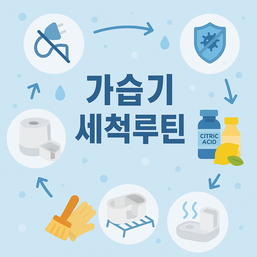 가습기 세균억제 표준세척 루틴은 물 교체만으로 끝나지 않습니다. 세균은 온도·영양·정체된 물에서 빠르게 번식하고, 잘못된 세척은 오히려 에어로졸 오염을 키웁니다. 이 글은 가습기 살균 세척 방법, 가습기 물 관리 요령, 초음파식 백색가루 해결, 소독제 안전 농도까지 한 번에 정리한 실전 매뉴얼입니다. 일일·주간·월간 루틴, 소독제 선택과 금지 조합, 초음파·기화·가열식별 차이, 오프시즌 보관까지 표준화했으니 그대로 따라 하면 됩니다. 마지막에는 바로 쓸 수 있는 체크리스트와 기록 템플릿 링크(가습기 세척 체크리스트, 소독제 안전 가이드)도 제공합니다.