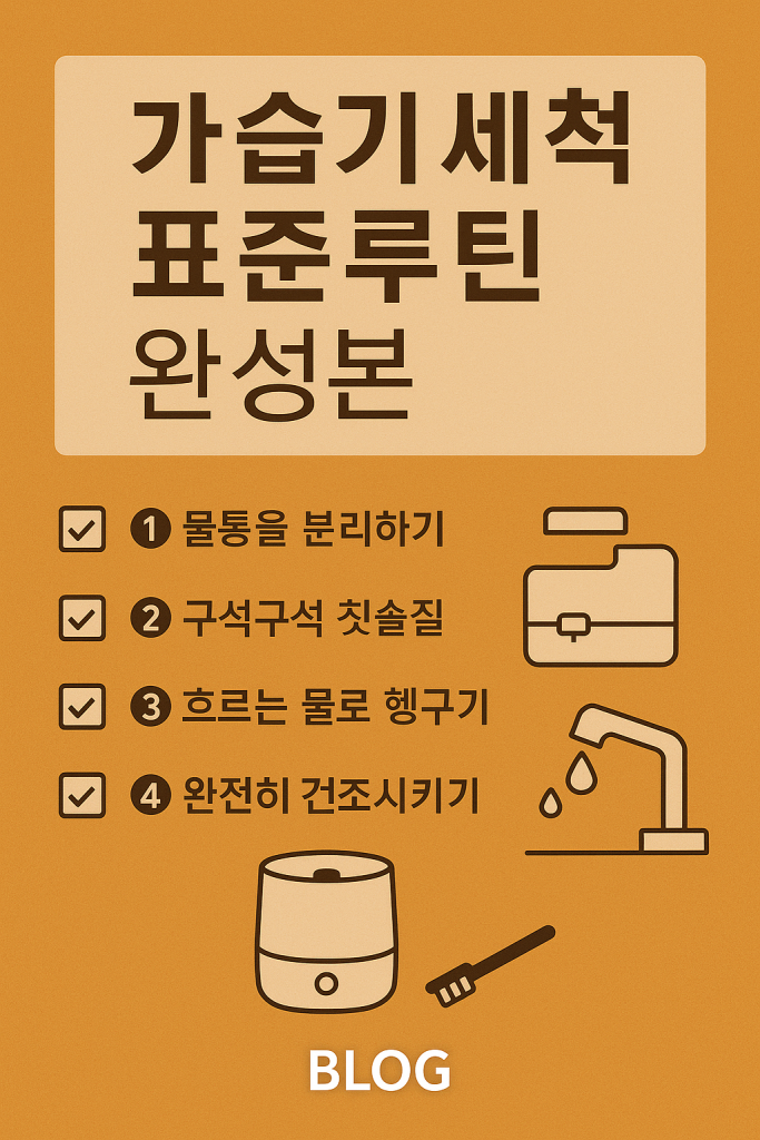 - A4 용지에 매일·주간·시즌별 가습기 세척 표준루틴 완성본을 적어 눈에 보이게 둡니다.